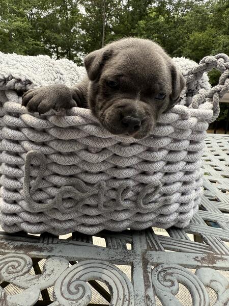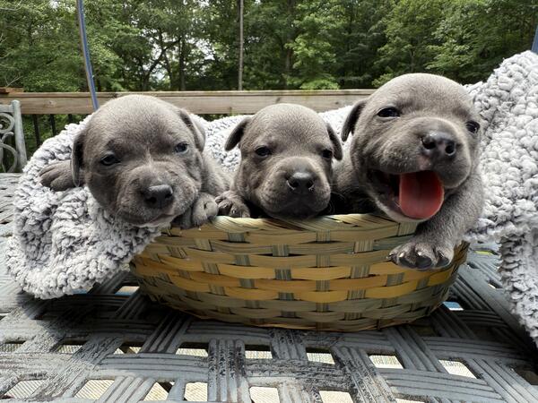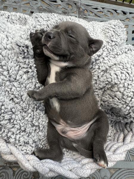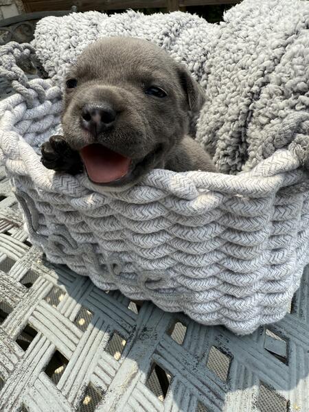 message weatpack about this ad We have 3 beautiful Blue Staffordshire Bull Terrier puppies available. They are purebreds. 1 - Male (Big Boy) - Available 1 - Male (Little Bit) - Reserved 1 - Female - Reserved They will be dewormed and have their first round of vaccines before going to their new homes. They are Blue and Blue & White and looking for their new furever homes! $3,000 each. Please contact me if interested. |