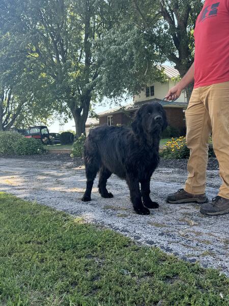 9 month male Newfoundland ! He has been raised being able to go in and out at will. He has a wonderful personality
