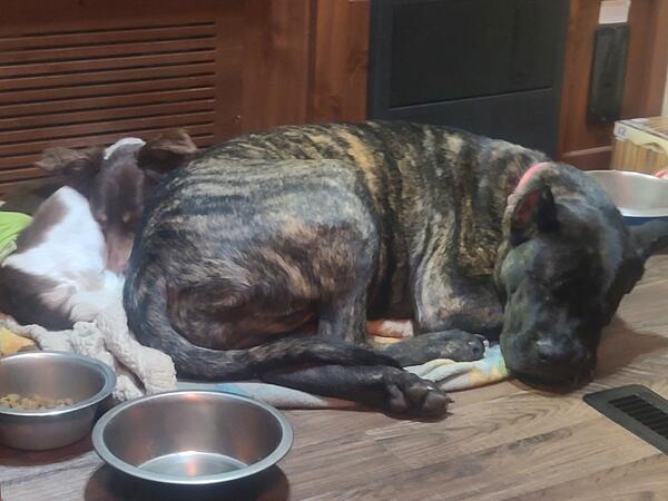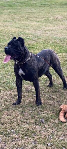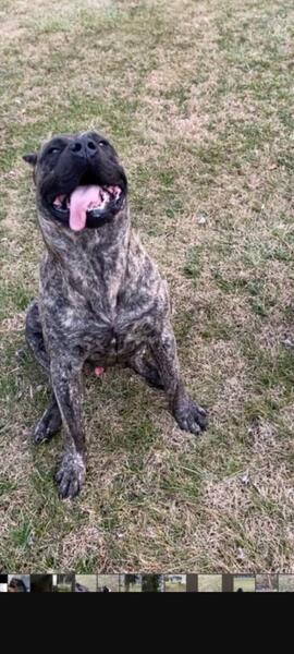 message stanleygirl013 about this ad NovaJean is pure bred Presa canario without papers She has had all of her shots except the rabies. Her ears are cropped. She is crate trained an potty trained. She will cry or bark to go out. So far she's been good with other dogs. Not sure about cats or other small animals. She is good with kids. Altho I recommend older kids cause she is large an gets excited. Does okay on leash. Her only down fall is she is a heavy chewer. She needs lots of chew toys. Not food or toy aggressive. But is shy around strangers and will bark. Very clingy and in your lap type dog. She has a chicken allergy and lamb. She has to eat beef only food. Only reason for rehoming is our living g situation we are now full time in a small rv. Last 4 pics are of mom an dad |