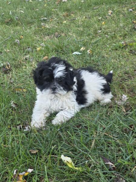 message happypuppies about this ad Shih Poo puppy was born 8/20/2025. His mom is a 15lb Shih Tzu. His dad is a 15lb Toy/Miniature Poodle. Johnny is a big chubby puppy. He was the only puppy and had all of the milk to himself. His expected adult weight is 16lbs. He is a well-socialized, playful puppy. If you would like to make an appointment to meet him, call or text Dawn at517) 410-4820 |