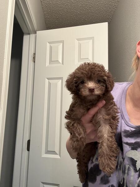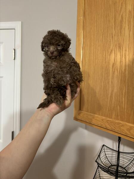 message dogmom85 about this ad Male toy poodle puppy left. Absolutely a sweetheart Will be 6-8 pounds full grown. Very tiny. Ready to go home today. 8 weeks old Very smart, sweet and hypoallergenic. I have daddy. You can text or call me anytime at (765)278-6353 good homes only. These puppies were my everything. No trades. |