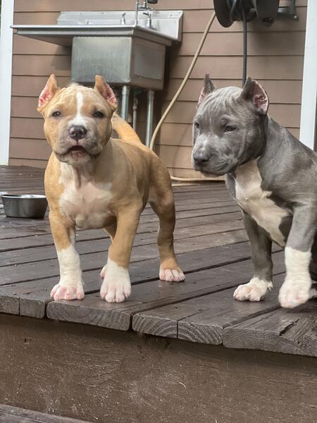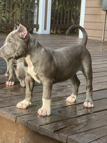 message bigstepperz about this ad Xl american bully pups I have 1male 4 females Born on june 7th Pups are 10 weeks old Health certificates included Ears cropped Pups have been dewormed Pups start at 1500 Contact me if your serious Mom is heavy sunline kennels Dad is heavy bossy kennels Plant city area Shipping available additional charge Abkc papers in hand You wont get this blood any cheaper anywhere else 81383six2303 |
