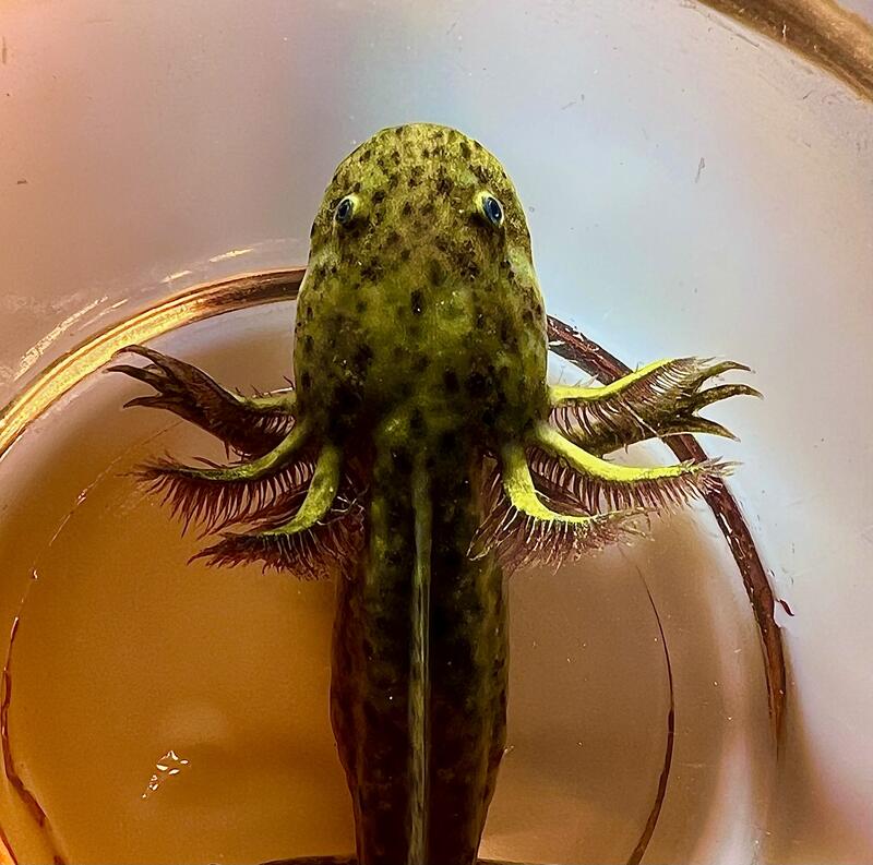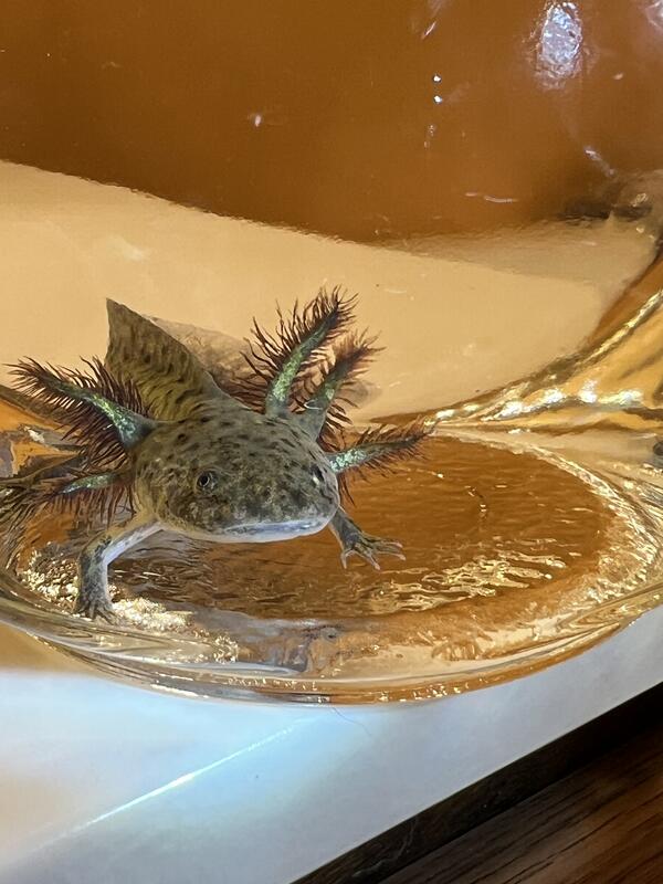 message stphl8996 about this ad This axolotl had a high number or iridophores that reflect a shimmering metallic gold when the light hits them. He looks olive to brown with deep red gills in dim light. In bright light there he his entire body becomes a glowing green with glittery gold iridophores speckled all over their body. He has a fun pattern to his spots. I accept PayPal Goods & Services which gives you buyer protection as well as other forms of payment. I do provide shipping. |