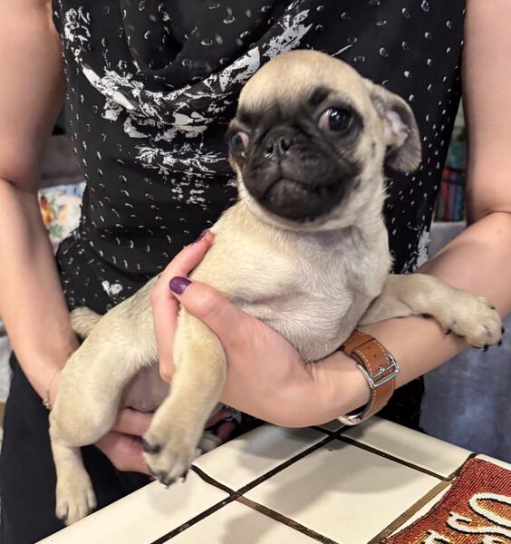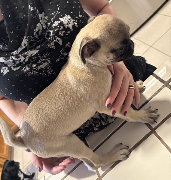 message puggiemom64 about this ad They are purebred fawn/silver pugs (no papers)Born May 20. They had their first set of shots on July 8. They are now potty pad trained and also use the doggie door. They love kids and are rambunctious with puppy energy, very playful. They have been eating Predigree brand puppy kibble.text or call, Fivefivenine415five6one6 |