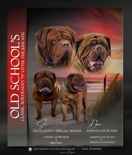 message oldschool1234 about this ad We are currently accepting deposits for our litter coming from the largest female in our program over the last 20 years in Argentina import Donata Los Picasos. Donata is a massive boned female with huge frame and great height and is larger than most males in America. She is the granddaughter of Multi International Champion Naughty Boy Nature Van de Madroelhoeve who is the son of World Champion Moby de Legeane. Though Donata Los Picasos is not our darkest female, she produces pups with great color and this time we bred her with massive stud Old School's Timeless Armani who consistently produces the dark mahagony pups in our program. Those who are looking for serious high quality pups with outstanding bloodlines and phenotype I encourage to reserve your pup right away to get on our puppy list. The photos of the 4 pups at 7 weeks are from a past Armani and Donata litter. This is the quality that comes from this great pairing. We socialize our pups very early and they have excellent temperament and not just with people but other animals as well to lessen their prey drive. Our pups are just not only for the families looking for companionship but also for any serious breeder looking to add the top bloodlines that produce better than themselves and with great consistency. If you desire a pup rare in look and quality please feel free to reach us at 765-461-8025. The minimum price for pups in this litter will be $4,500, with the higher picks being more. message oldschool1234 about this ad |