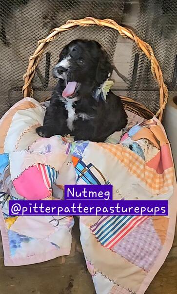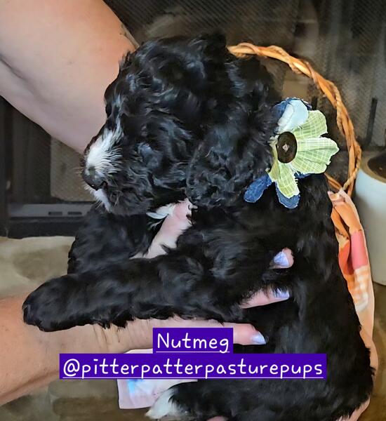 message pitterpatterpastures about this ad Nutmeg is an F1 Standard Bernedoodle female. She is mostly black with a white muzzle and chest. She will be furnished and non-shedding. She was born 7/21/25 & will be ready to go home beginning of October. We are located in NWGA but willing to travel to neighboring states (especially FL in Oct as a trip is already scehduled More info about our program and reviews can be found on our puppy website: 3PsPoodlesandbernedoodles.com or our IG @pitterpatterpasturepups Our FB is Pitter Patter Pastures Contact us soon, these pups won't last long at this price. |