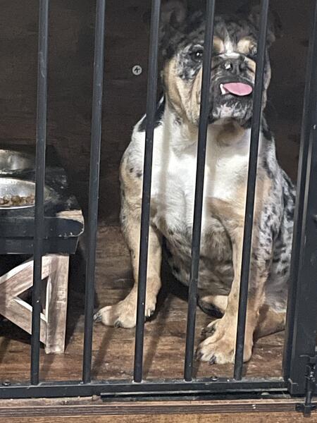 Female English Bulldog Merle Tri 1 Year Old Akc Papers 2K OBO