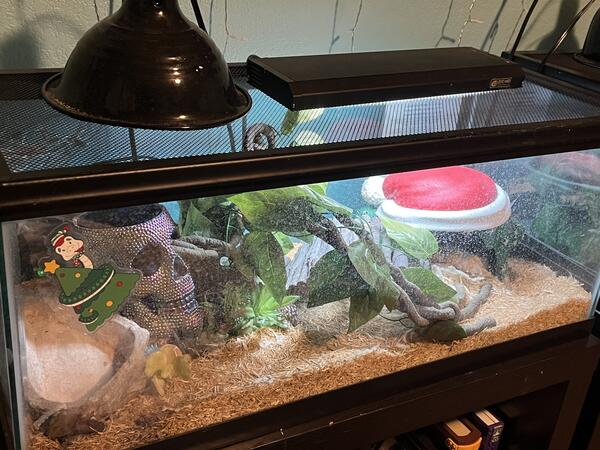 1 yr old eats live rats. Will come with enclosure fully set up and lights. Handle able.