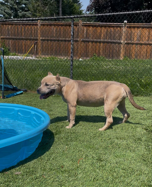message prclss6324 about this ad Meet Our Girl Star Loving and Gentle, Looking for Her Forever Home. Birthday: September 6th, 2024 Breed: Pocket American Bully (Fawn) Star is a playful, gentle, and loving companion seeking a forever home. She thrives with someone who has time as shes is very affectionate, still young and thrives off attention. Star can be left alone during a work shift (in a crate) or out in the home for short periods. Star does not show separation anxiety or aggression of any sort. She is good with other dogs + children and has been socialized with both since birth. Shes a great outdoor buddy who loves walks, exploring, and traveling. She loves to run (zoomies) and a home which can provide 1 hour of walks + exercise daily is mandatory. Star is very well-behaved in the home fully house-broken, does not chew, and has basic training. She enjoys to cuddle, being pet and just chilling at your feet. She is used to a quality diet of kibble, beef, fish, chicken, venison, vegetables, and fruits (Star has shown no signs of allergies and can eat all food types Star is up to date on all vaccines and has not been spayed. Her ears are cropped and she has no health issue. Her parents are UKC + ABKC Registered, she is a purebred American Bully. Price does not include papers but can be discussed. If youre a dog person looking for a loving, loyal companion who respects your home and thrives on affection, Star could be your perfect match. Serious inquiries only Star deserves a safe, loving forever home. Justin (647) 996 0165 message prclss6324 about this ad |