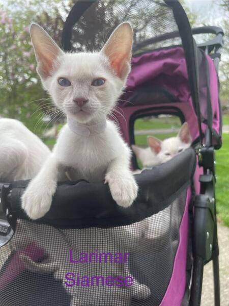 message donna4siamese about this ad Kittens are CFF registered. They see the vet at 8 weeks for well visit and immunizations. Classic/modern style Chocolate Point and Lilac Point Siamese litter. Males and female available. Parents are DNA tested for health and diversity. Larimar Siamese on Facebook. Delivery area in St. Petersburg, Florida. For more information or to reserve your little one contact 563-500-8514. |
