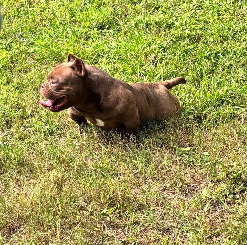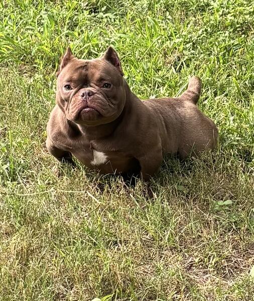 Chocolate female nano bully , super tiny . In heat now 1 year old. Shes a show stopper. 5k or best offer