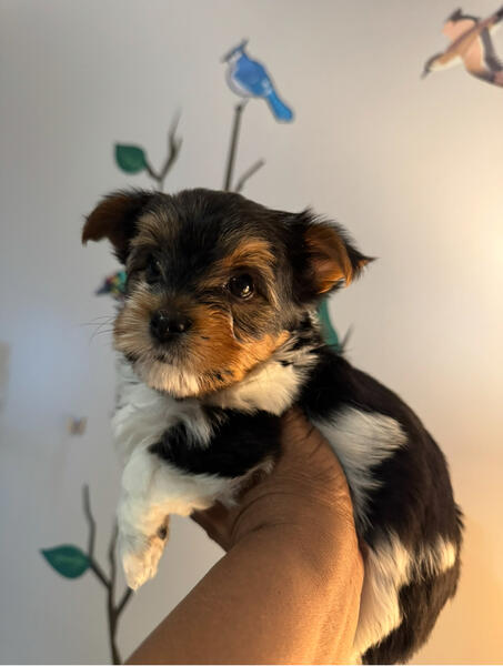 message happylife about this ad Chops is a parti Yorkie maie. His mom is Parti and the dad is Midnight Black. Chops was the 1st born out of a litter of 4. He has a very happy temperament and love belly rubs and to be held. If you love kisses, he will do just that. He comes with: Vet Examination and Health certificate deworming records at 2,4,6 & 8 weeks old 1st distemper tail docked Scented blanket Registration Papers Contract & Health Guarantee Puppy Pack Food Toys Sanitary items More Contact Info: Yorkiesbylindsay.com Email: info@yorkiesbylindsay.com |