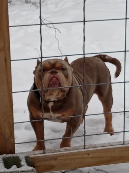message elmstreetbullies about this ad Champagne tri colored American bully ready to work & we have a seal Merle up for stud to 440 529 5374 Registered 4 ways Abkc,ukc,us bully |