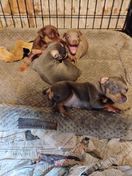 message matte55 about this ad I have 7 puppies 1 blue female $1000chocolate male 800fawn female1000also 3 red males 400.00 each no paperstext me a 740-691-0775 and I will send picstrying to get pics on my ad in the next few daysthey are beautifulonly the red males are 400 |