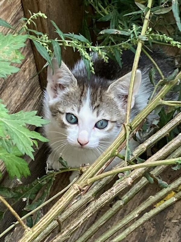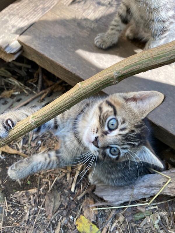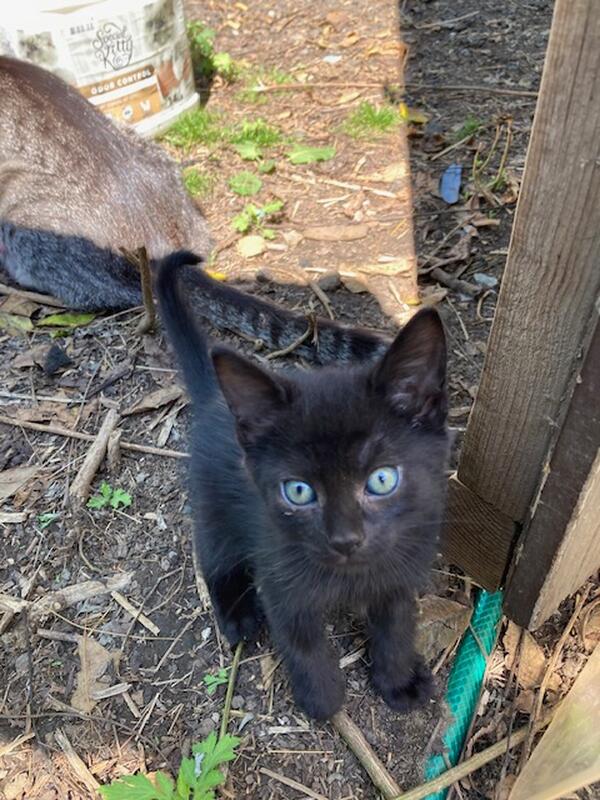 Kittens. Eight weeks old. Two black ones and one tabby. Very Friendly.