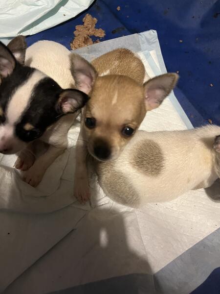 First shots done and wormed . Both parents are small under 5 lbs . They are 6 weeks old and weigh about 1 lb