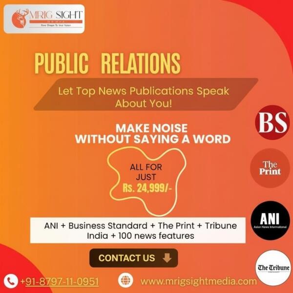 message mrigsightmedia about this ad Amplify your brand voice with Mrig Sight Media, a leading public relations agency in Delhi and a top-rated public relations company in India. Get featured in top publications like ANI, The Print, Business Standard, and The Tribune all for just Rs. 24,999 As a results-driven PR agency in Noida, we help your brand gain visibility, credibility, and trust through impactful news coverage and strategic storytelling. Let the media speak for your success! |
