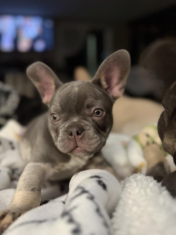 message julie71 about this ad This beautiful male French Bulldog is 12 weeks old and has great structure. He is blue, lilac and white with tan points. He is potty tracing and caged trained. He has a great demeanor and well socialized. He will make a great addition to any home. |