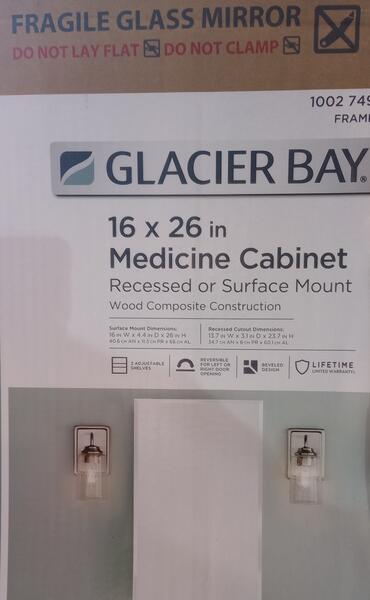Glacier Bay 16X26 White Medicine Cabinet With Mirror -- 40.00
