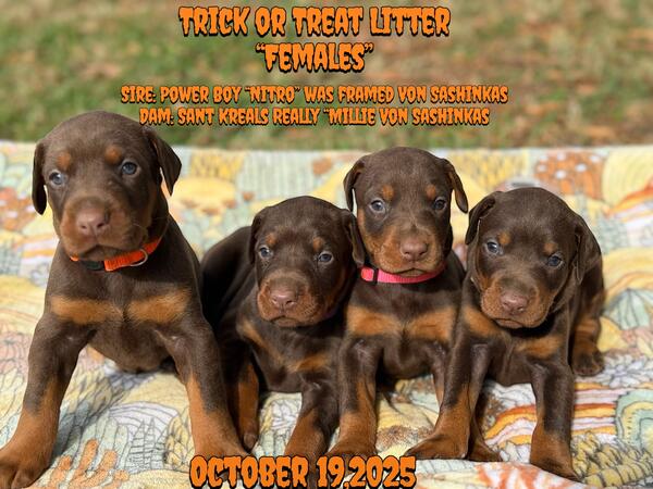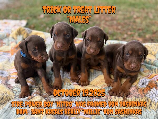message timberly about this ad Trick or Treat Litter Now Accepting Reservations! DOB: October 19, 2025 Puppies are currently 4 weeks old! We have 3 males and 2 females available First Pick Male (Boo) and First Pick Female (Willow) are already SOLD. Males Boo Black Collar (SOLD) Casper Blue Collar Salem Green Collar Snickers Red Collar Females Pumpkin Orange Collar Luna Purple Collar Spook Yellow Collar Willow Pink Collar (SOLD) Puppies will have their ears cropped on December 15 and will be ready for pickup December 2223. All puppies come AKC registered, with age-appropriate vaccinations, regular deworming, tails docked, dewclaws removed, and a lifetime microchip covered by us. Sashinkas Kennels Puppy Perk: Every puppy receives an exclusive discount at Raptor Land Boarding & Training setting your new companion up for lifelong success! Message us to reserve your puppy today! |