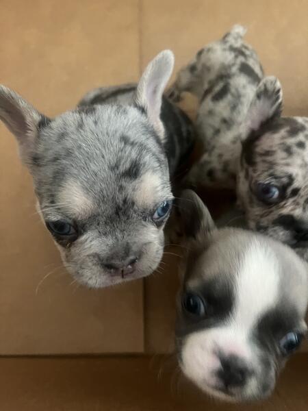 message shayward74 about this ad I have 6 blue Merle and lilac Merle French bulldog puppies. Pet and AKC options are available 1 year health guarantee. Any questions or want to visit or FaceTime with them you can text me 254-421-1569 |