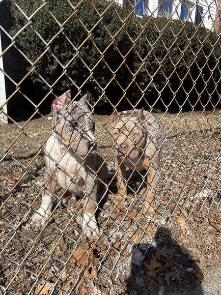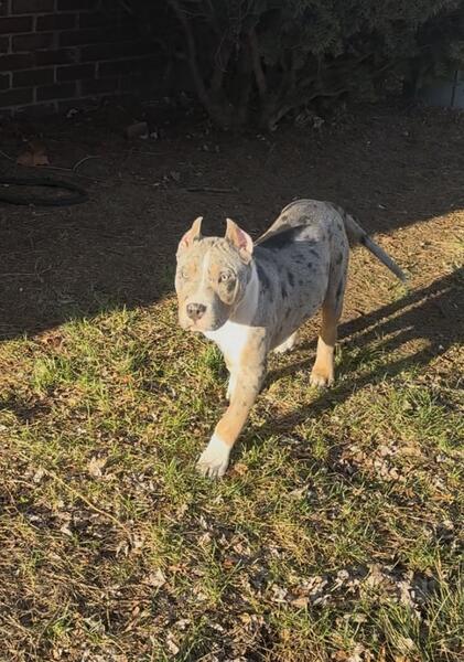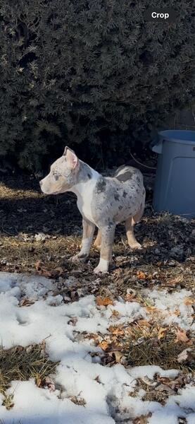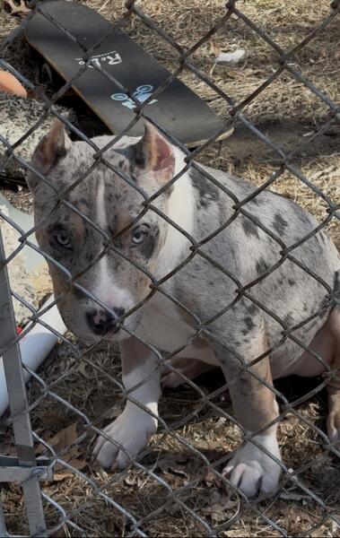 message snowwhite444 about this ad I have a male american bully born november 3. Hes a tri merle. Very sweet and loving boy. ABKC registered, shots, dewormed. Raised with kittens and kids so hes very social. i own both parents. breaks my heart to have to part with him! hes so spoiled, he loves to be held and just be right by your side. must go to a loving family that can provide plenty of space and love. |