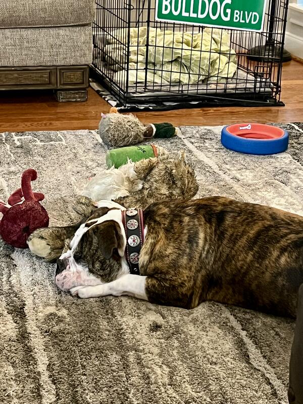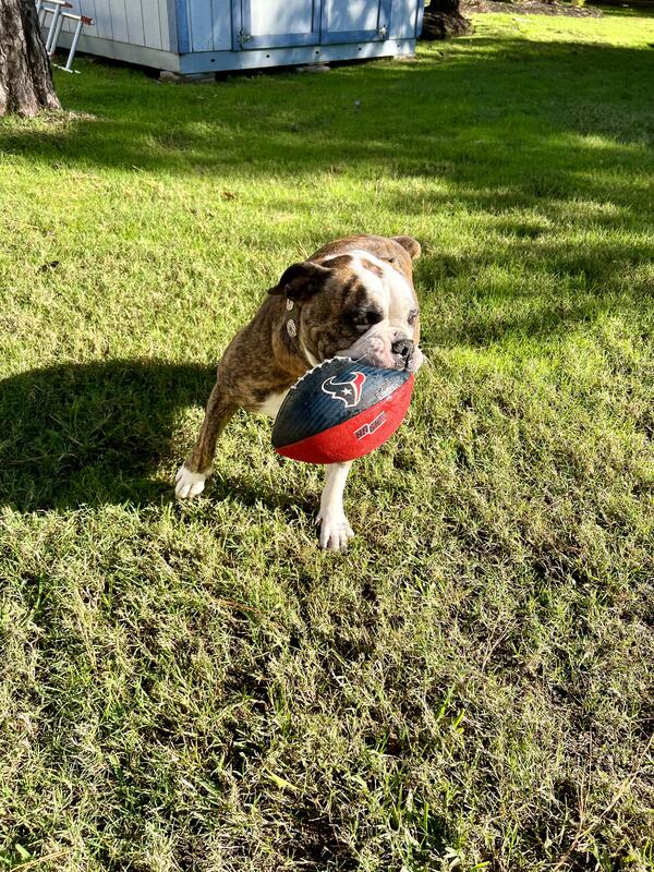 message siete about this ad Adopt Willow! Shes a registered Olde English Bulldogge. Shes 7 and spayed. Shes also current on shots and heartworm medicine. Shes microchipped. Fully housebroken, with no accidents and asks to go in/out. We do crate her when we leave because she gets anxious and at night because she snores a lot if in the room with us. She comes with her large crate, bed, leash, collar, toys, and bowl. In fact, she will come with as many toys as youll take for her. Her adoption fee is $200. She is great with all pets and animals, but strongly prefers to be the only dog getting all the love. It is among the reasons shes being rehomed. (we have another dog) She is wonderful on a leash and in the car. As a Bulldogge, shes not very heat tolerant. She must live inside. She loves walks during cool parts of the day, or in the winter. She is a rescue from Ohio. She is getting a bit older but still loves to play tug, fetch, etc She just cant always go with us because her stamina isnt there. It breaks her heart and ours. We are looking for a retirement home for the rest of her life, that will shower her with love, tug, fetch, and belly rubs. Wed like periodic updates on how shes doing, as she is very loved. She is not needy or clingy, but likes to be around you. Shes an easy keeper, eating lamb and rice food. She does have a benign skin tag. Sometimes she is stiff when getting up, but then sometimes shes unloading/loading from the SUV with no issues. She loves golf cart rides. Wont get on furniture unless invited. Great for a bath. Sounds viscous behind the door but welcomes anyone. I think that about covers it. If youd like to meet her, please let me know a little about your home. We are in Spring near 99 and Gosling. message siete about this ad |
