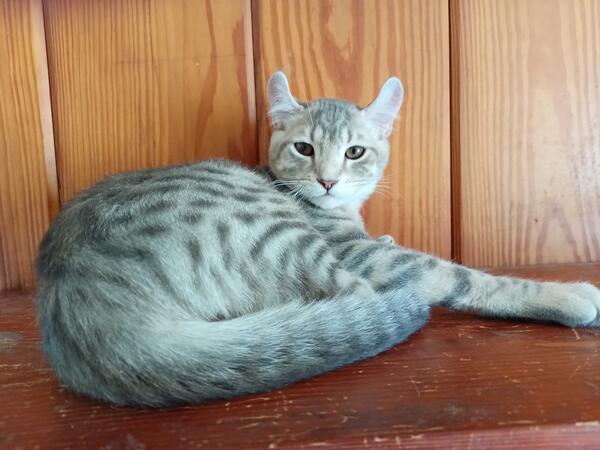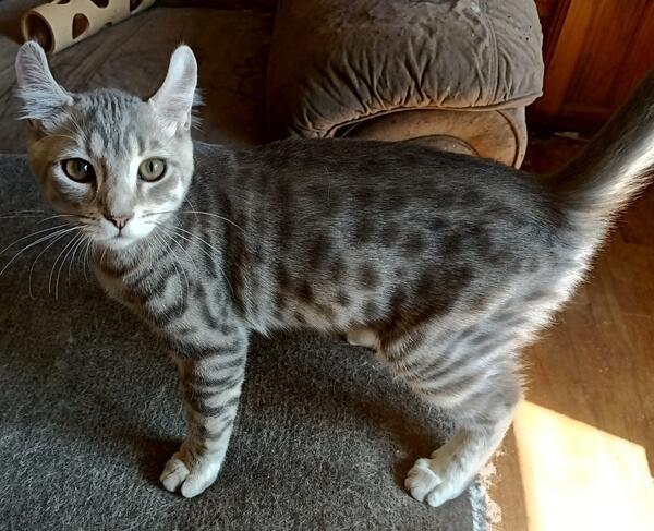 TICA registered nonstandard (polydactyl, long tail) blue spotted tabby. DOB 4-17-2025 male