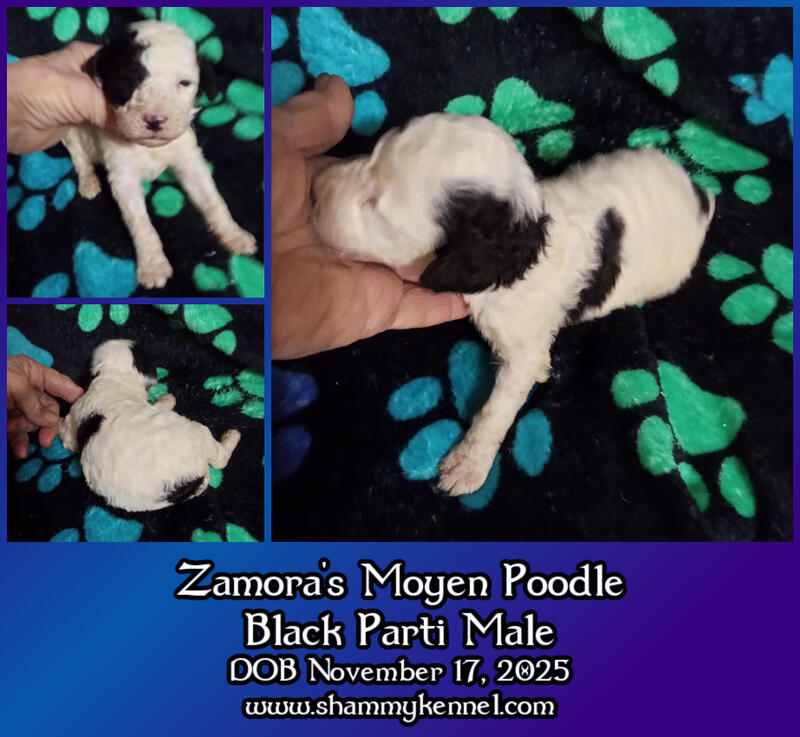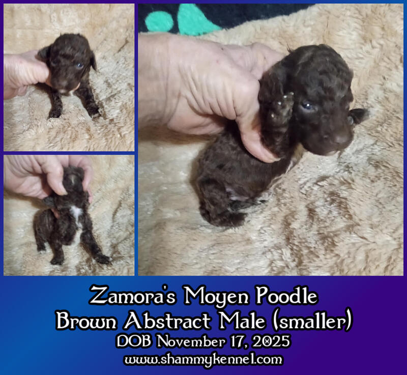 message shammykennel about this ad One black parti, two brown abstract moyen sized standard poodle males. Phantom factored. (Sire is brown phantom DOB Nov. 17, 2025. Will have age appropriate vaccinations and genetic health guarantee. Pet price is $950, CKC registration for breeding is $1250. Additional photos and information can be found on my website, shammykennel.com. Phone or text 870-371-3193 CST. |