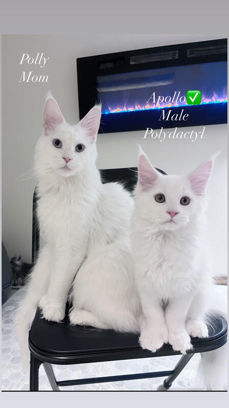 message mainecooncapitol about this ad Maine Coon Capitol Cattery | Appleton, WI TICA Registered | European & Russian Lines | Serving Wisconsin, the Midwest, & Beyond We are Maine Coon Capitol, where healthy, beautiful, and TICA-registered Maine Coon kittens are raised with love. Located in Appleton, Wisconsin, we have been specializing for years in high-quality lines, focusing on beautiful fur coats, polydactyl traits, and rare European and Russian imports to ensure robust health and stunning looks. We currently have two exceptional kittens old enough to leave their mother. Sired by a black smoke Russian import with green eyes; Dam is a white polydactyl with blue eyes of European descent. Apollo: Male, white polydactyl (on all four paws) with hazel eyes. Wonder: Female, white with hazel eyes. All kittens are raised in-home and fully socialized, and come with: Age-appropriate vaccinations & deworming TICA Registration paperwork Parents' genetic testing results Parents' pedigrees Apollo (Polydactyl White Male ) : $2,600 Wonder (Standard White Female ) : $2,100 Breeding Rights: Additional $200 (inquire for details) Special sibling pricing available for kittens purchased in pairs! Pickup location is Appleton, WI. We can set up couriers to deliver out of state. Contact Us: Call or text: (920) 547-2069 Website: mainecooncapitol.com Facebook: Risingstarcoons family (Maine Coon Capitol Cattery) message mainecooncapitol about this ad |
