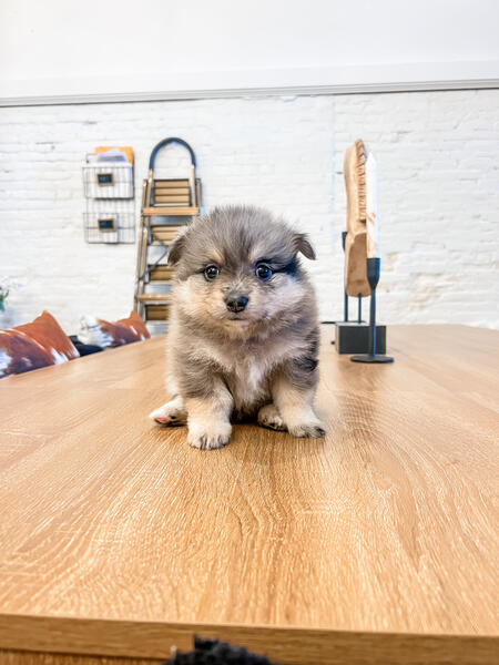 message kab1988 about this ad Marble- blue Merle female Born in Mothers Day, ready July 6th Mom and dad are my personal pets, mom is a blue Merle Pomeranian and dad is a triple coated solid white Pomeranian. Puppies are raised in home with daily snuggles. Puppies come vet checked, vaccinated and dewormed. |