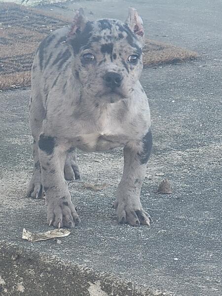 message royalbluebullies about this ad Hello we have a 11 week old Pie-Bald American Bully Female. She will come with ABKC . Up to date on and ready for her forever home. Price is $2000. SERIOUS INQUIRIES ONLY NO YOU CANNOT SEND A FOUR DIGIT CODE WILL NOT RESPOND TO SCAMMERS |