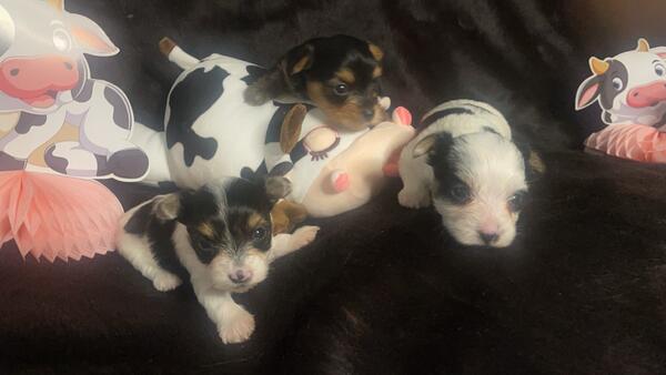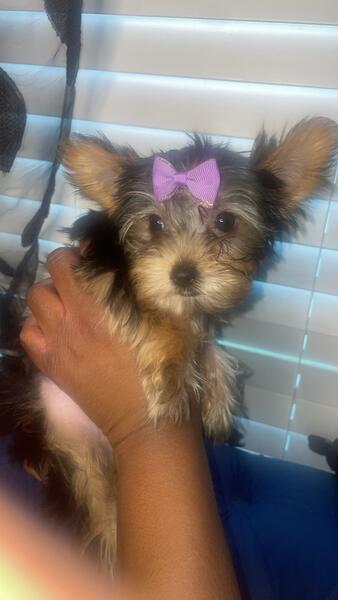 message queenpin about this ad Exotic parti yorkie girls. 2 months old! Ready to go to their furever home. They are looking for the perfect home today! They are so adorable, i nearly wanna keep them for myself. They come from a champion bloodline.I have pics of puppies as well as mom and dad. Mom and dad are 3lbs. Dad is the handsome fellow with the Burberry shirt on and mom is the beautiful young lady in the red . You will fall in love text 3134522201 for serious inquiries |