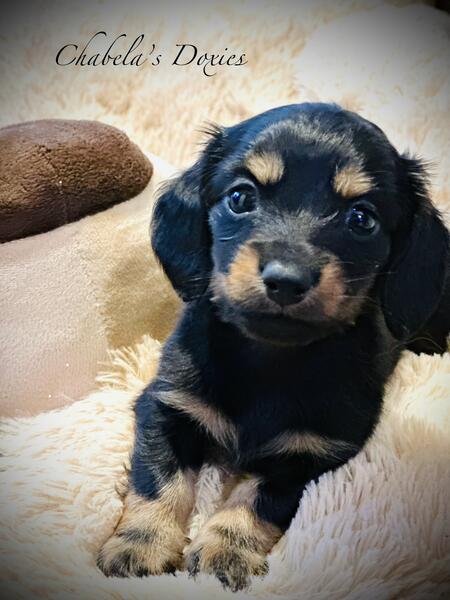 message chabelasdoxies about this ad DOB 9/6 just turned 9 weeks old. Black and tan long hair male. Will have clean bill of health and fully vaccinated. Parents are on site. Welcome to come visit and see the parents and puppies. Must call, please no texting 35two-five77- 23eight0. Only serious and responsible people. Prices vary and start at 1,200 checkout the facebook page Chabela Doxies |