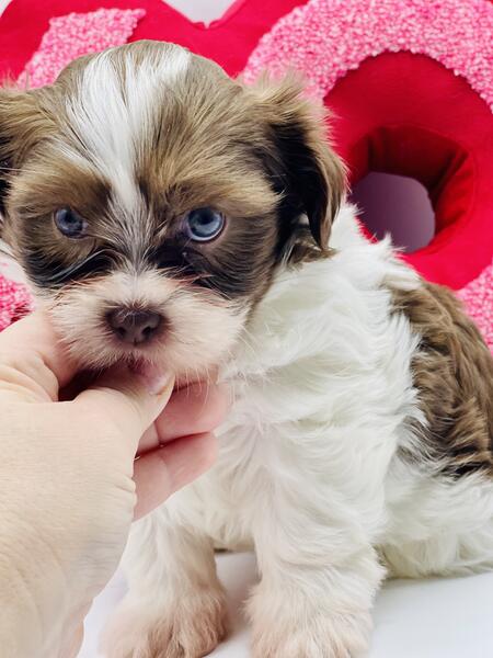 message rabsbaby about this ad Beautiful chocolate & white boy , born 8/31/25. Mom is my beautiful kb blueberry Yorkie, Dior. Dad is my nieces liver Shih Tzu, Pudge. THIS IS A ONE TIME ONLY BREEDING! These babies are Yorkie/Shih Tzu mix, better known as Shorkies. This baby is 11 weeks old and has been seen by the vet for his health check and first vaccines . He is now ready for his forever home If interested please message me. |