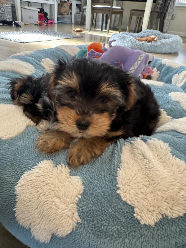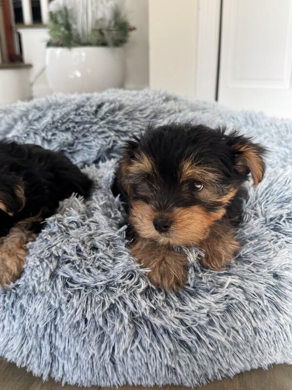 Yorkie puppies ready for pick up . First vaccines done. Home raised . Both parents are house pets.