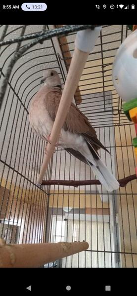 message cthom99 about this ad Our ringneck dove Pi is ready for a new home (born on national pi day) He is quite spunky, loves to fly around our house. He will sit on our curtains and make little sounds at the tv. We have been trying to get him to bond with one of his siblings or a female but we think he might do best in a single bird home or with his own separate cage. Loves to watch you cook and will follow you through the cage bars. He will sit on your finger or perch on your knee. He CANNOT GO OUTSIDE UNLESS IT IS A CLOSED AVIARY. He will fly away. He must still be able to fly indoors to exercise. For anyone interested I have more videos and photos/info. Asking $20 to make sure he doesnt go to someone who is just going to release him. Cage not included. |