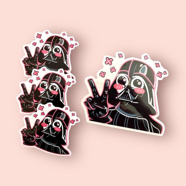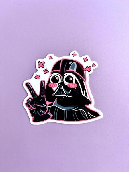 message flyingnimbyco1 about this ad Keychain Darth Vader Cute: Bring a touch of cuteness to the Dark Side with this Kawaii Darth Vader Keychain! This unique keychain features the iconic Sith Lord flashing a peace sign, with sparkles in his eyes and surrounded by flowers. Its the perfect accessory for Star Wars fans who love a cute twist on classic characters. FlyingNimbyCo |