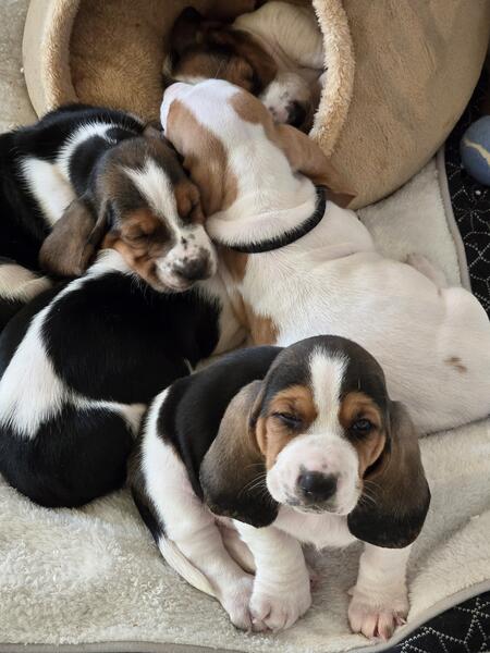 message rdvrv9368 about this ad Tri and reds European Basset Hound puppies. AKC registered litter. 6 total available. 4 boys and 2 girls. 8 weeks old. Pedigree, paperwork, vet visit complete and 1st shots. Parents part of our family and on site. 1st liter. Your baby is waiting g for the right family. South illinois location. Pick up or can meet you. These sweet and lovable babies will fill your home with love just as their parents have done for us. Both parents full European. Champion. Line with pedigree of champions. Please contact me for info or more pics. rdvrav96@yahoo.com |