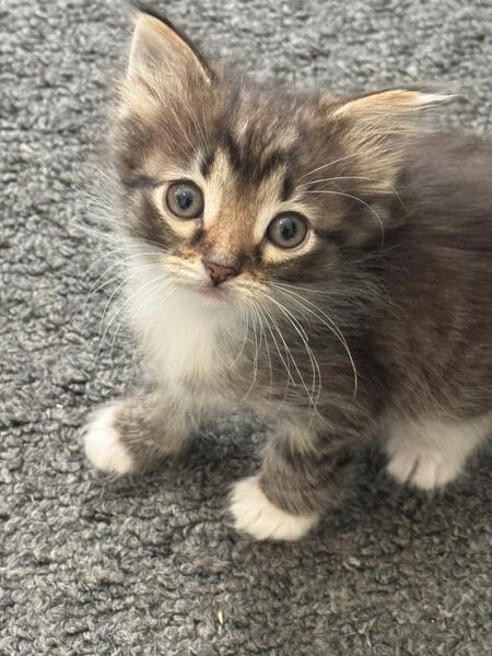1 boy 1 girl tabby coons dad is a Maine coon mom is mixed with tabby and Maine coon $150 rehoming fee each