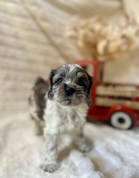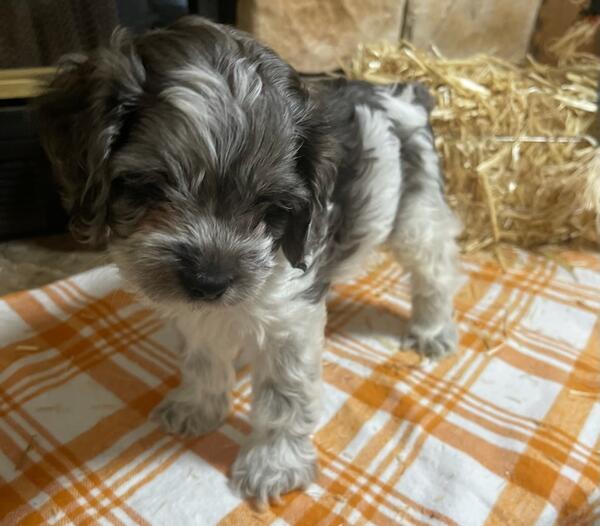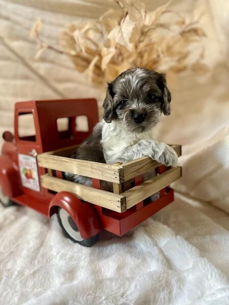 message bntbl5010 about this ad i have 1 puppies left. he is up to dates on shots. He is projected weight is around the 18lb range. he also has 1 partial blue eye. |