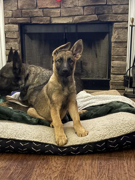 message barfieldab about this ad Mom is German Shepard Dad is Belgian Malinois. Puppies are 12 weeks old now. A mix between a German Shepherd and a Belgian Malinois is called a Malinois X. This hybrid breed is known for being intelligent, energetic, and good-natured, and is a loyal protector of its family. Call with any questions 478-731-9041 $175 |