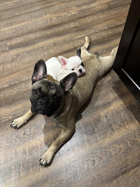 message anj1976 about this ad I hate having to do this it breaks my heart. I have male and female french bulldog im looking to rehome. Due to my work hours changing it is not fair to them. They are my babies and this hurts my heart. Would love see them go together as they are close. I prefer them go to pet only home not to a breeder. Both are registered however I will not be sending there papers. I am asking 1300 each Jax the male is 11 mths old Willow the female is 6 mths old. Jax is sable looks more like fawn with black mask. Willow is a pied fawn |