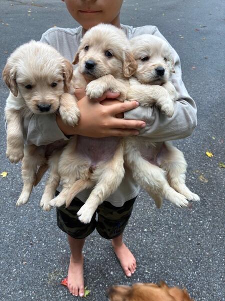 message lrbkrd5257 about this ad AKC Golden Retriever Puppies Mom and dad on site. Mom is an American Golden and dad is an English golden. I have two males and one female available. They will have their first set of vaccines and be dewormed upon leaving, well socialized with children and other animals. They are limited breeding rights. We ask for $100 (nonrefundable deposit) that comes off balance to hold a pup for you. Will be ready to leave next week! Week of October 5-12 Please call or text with any further questions, serious inquires only: 989-890-7407 |