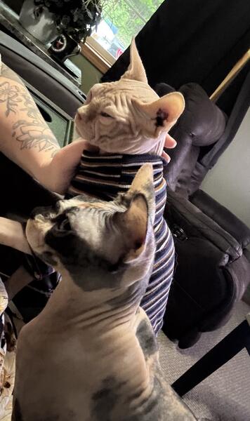 message titos about this ad A male and a female spynx Both fixed and current vaccines Male-pink born Jan 2024 Female-Calico born June 2024 Good with kids, cats and dogs. Very sociable and love to sit on your lap and sleep in your bed. No issues. Just family living situation is changed. Would like to go together but can be separated $1500 each 715-379-7861 Black River Falls Wi |