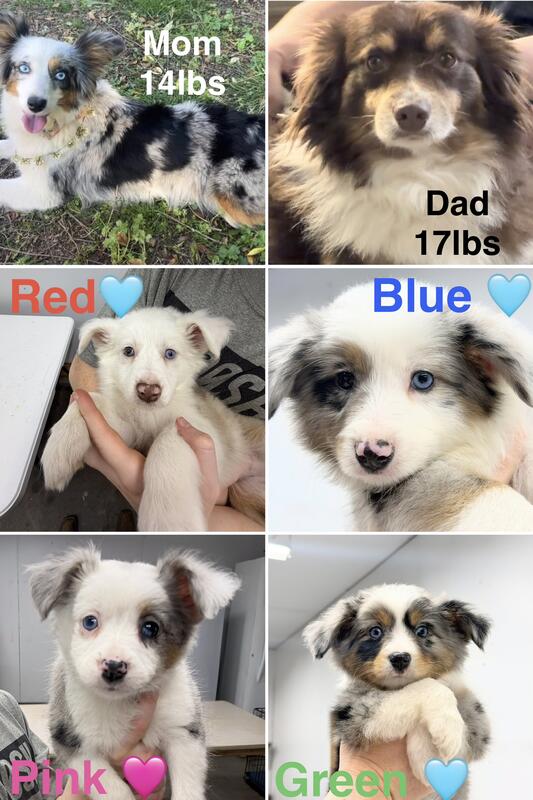 message littlebuckeyes about this ad Puppies are 1000. Each puppy comes with a vet check, pending ASDR registration, vaccinated, wormed, puppy food, licking mat, collar, leash, and initial flea and tick treatment. Mom is 14lbs, dad is 17lbs; both are located here in Southeast Ohio. Pictures are: PINK Blue Merle female, BLUE Blue Merle male, RED Red Merle male, GREEN Blue Merle male, MINT Black Tri female. Mom, Blue Merle, Dad, Chocolate Tri. |