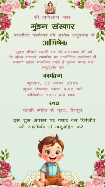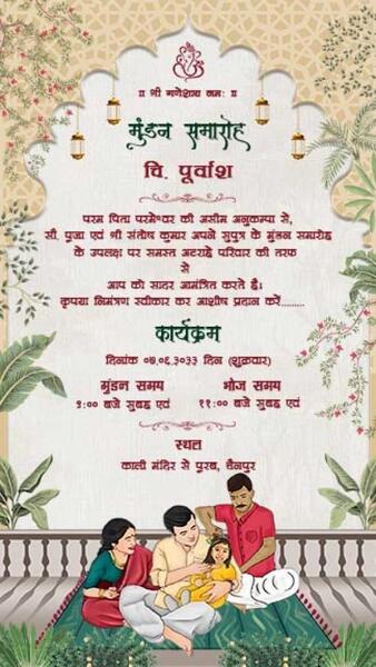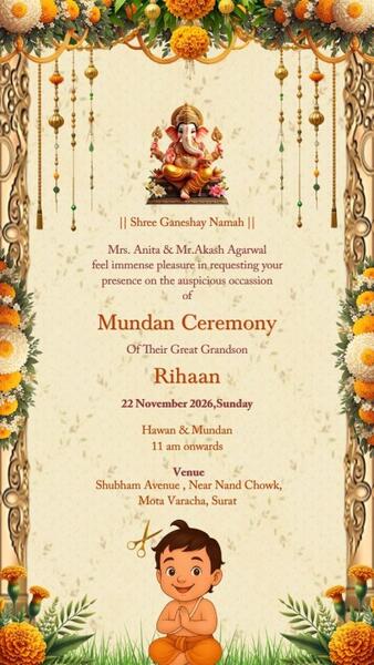 message craftyart123 about this ad Looking for a Mundan card format in PDF? Download free, editable designs for Mundan Sanskar invitations. Simple to customize with babys name, date, time & venue. Share digitally or print instantly. Perfect for traditional or modern Mundan ceremony invites. |