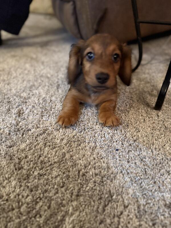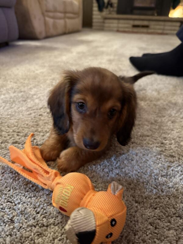 message firstfrostkennels about this ad Schnitzel is an outgoing pup! He will follow you everywhere! He has started crate and potty training. He loves to cuddle and play with his favorite lamb chop toy! He has been raised inside with adults and kids! Utd on Vaccines and Deworming No registration Located in west branch mi 48661 Contact Anna at nine eight nine- 701- zero eight three eight |