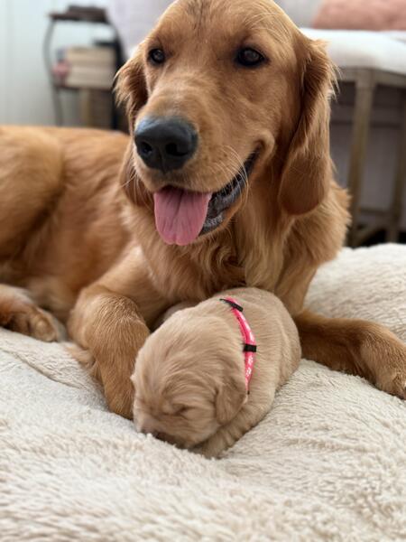 message clarkgoldens8 about this ad We are the Clark Family and this is our golden litter. Lady (mom) is a dark red golden retriever. She is AKC and ACA registered. The sir is a beautiful light cream golden, Tucker. Tucker is ACA registered. Our pups are ACA registered. Her pups are bred from from two calm golden retrievers to enhance that characteristic in the pups. Currently they are light red and cream, however, several of them have red tones in them and I expect them to darken as they get older. There are a couple that look like they are going to be light cream. We are not a breeding kennel. We are a family of 4 that love our golden and wanted to have a litter of pups. It has been so much fun and our girls have learned so much about caring for small animals. We love each of these little cuties and they get lots of snuggles. Our hope is to find wonderful loving homes for each fur baby. We have 5 males remaining from our litter of 8. They will be ready for re-homing early August. For questions please contact me at +1 (502) 507-3095. message clarkgoldens8 about this ad |