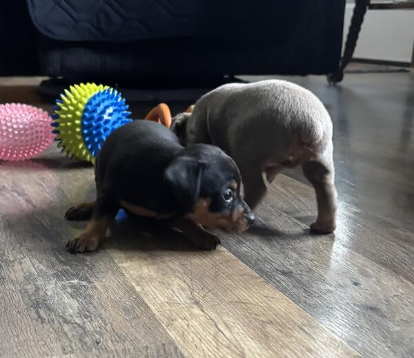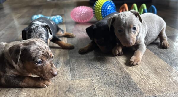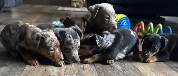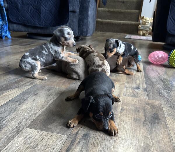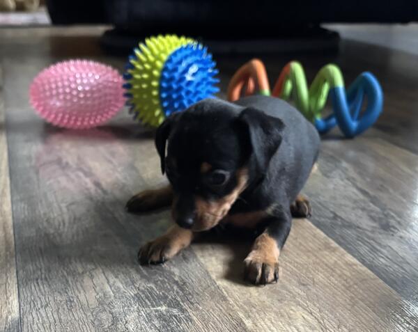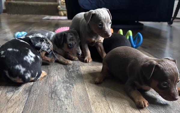 message minpinohio about this ad I have a beautiful litter of 6 four girls and 2 boys for Christmas! They are registered and have tails and declaws done. Have the first shots and dewormed also done! They are ready for their forever home! Please call or text if you are interested in a pup! 330.324.2023! Or 330.324.9166! $600. And up |